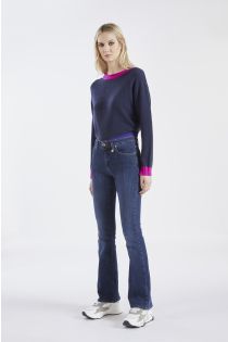 Pantalon basique à pattes d'éléphant en toile denim hyper-stretch.