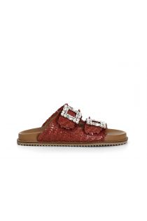babouche en cuir tressé avec double boucle bijou bordeaux