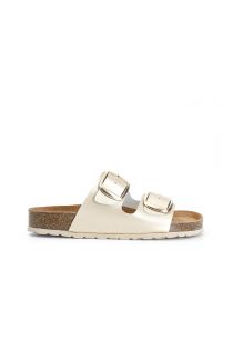 Chausson femme à double boucle. fussbett en cuir confortable de 2.5 cm de haut.