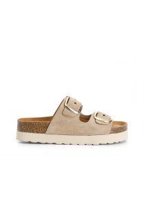 Babouche femme en cuir avec double boucle. fussbett en cuir confortable de 4 cm de haut.