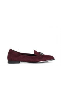 Ballerine en daim avec mors personnalisé. la doublure et la semelle intérieure sont en cuir. talon haut de 15 mm.