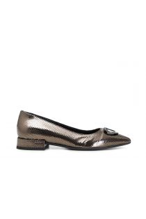 Ballerines en cuir imprimé à pointe avec accessoire métallique