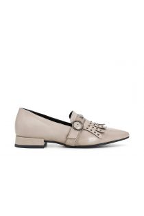 Ballerines en cuir nappa à pointe avec frange agrémentée de cabochons