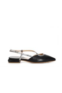 Ballerines en cuir nappa et laminé ouvertes derrière par une bride et décolleté asymétrique.