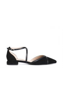 Ballerines en daim avec entrecroisement. la semelle intérieure est en cuir. chaussure coupe slim. le talon mesure 2 cm.
