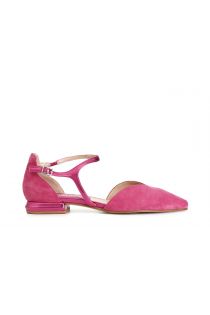 ballerines en daim avec laçage asymétrique lamé hot pink