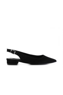Ballerines ouvertes derrière en daim bride avec boucle. semelle intérieure en cuir. talon haut de 30 mm.