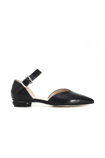 Ballerines en nappa avec bride à la cheville à la forme fuselée en pointe. Talon bas gainé du même matériau que celui de l’empeigne