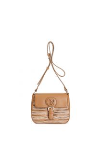 bandoulière à rabat avec détail en maille filetée. tan