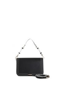 Sac bandoulière à rabat orné de mini rivets bicolores et de côtes contrastées. equipé d'une cloison zippée d'une bandoulière courte avec épaulière et d'une bandoulière amovible.