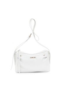bandoulière en cuir souple grainé avec rivets métalliques white