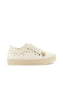 Baskets montantes pour femme en tissu perforé à bords festonnés et lacets maxi en coton assortis. un détail bijou et un talon compensé de 4 cm en corde tressée. un esprit romantique et une allure estivale garantie.