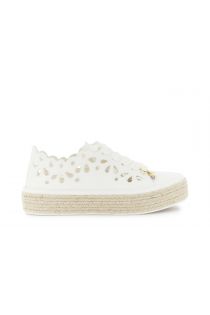 Baskets montantes pour femme en tissu perforé à bords festonnés et lacets maxi en coton assortis. un détail bijou et un talon compensé de 4 cm en corde tressée. un esprit romantique et une allure estivale garantie.
