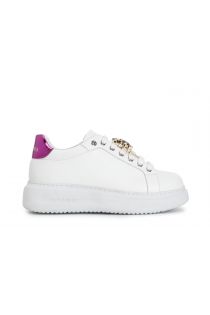 Sneakers en cuir pour femme enrichies d'un magnifique bijou amovible placé sur le laçage qui rend la chaussure vraiment unique et résolument glamour. semelle en cassette et semelle intérieure en cuir.