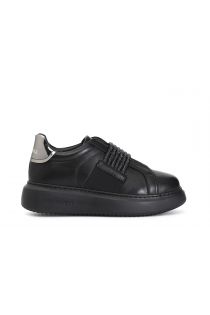 baskets en cuir avec bande strass black