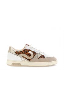Baskets en cuir avec empiècements en poney tacheté, détails pailletés et doublure en tissu. Un mélange audacieux de confort et de style animal pour des looks originaux et affirmés.
