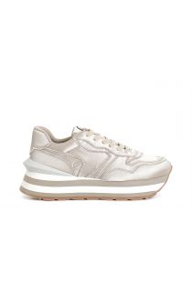 Baskets à lacets en tissu frangé. bout rond. semelle bicolore de 4 cm. des baskets fonctionnelles qui donnent une valeur ajoutée à chaque tenue.