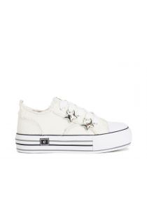 Baskets en toile et accessoires en dentelle amovibles. embout en caoutchouc. fermeture avec lacets assortis à la chaussure. semelle cassette de 4 cm avec détails colorés. des chaussures qui s'associent facilement avec tous les looks.