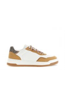 Baskets effet cuir avec empiècements en daim et lacets bicolores. Un design sportif idéal pour des looks décontractés et dynamiques. Semelle en caoutchouc de 3,5 cm. Confort et style au quotidien.