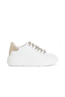 baskets femme en cuir avec effet pailleté sur le talon white/gold