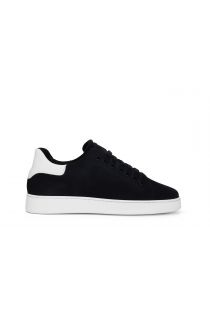 Baskets à lacets pour hommes en daim et cuir. la doublure et la semelle intérieure sont en cuir. chaussure de forme arrondie.