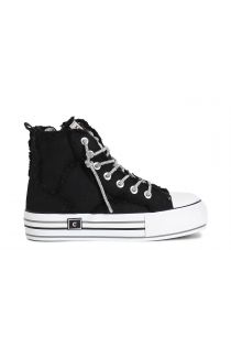 Baskets mi-hautes en toile. fermeture en dentelle strass. semelle cassette de 4 cm avec détails colorés. des chaussures qui s'associent facilement avec tous les looks.