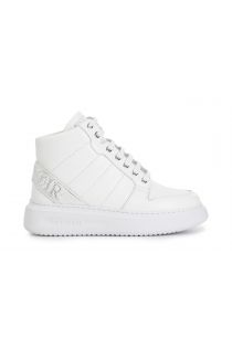 Sneakers en cuir à hauteur de cheville. des coutures latérales et un joli ruban à l'arrière avec l'inscription cafènoir en strass rehaussent la chaussure. la semelle est en forme de cassette et la semelle intérieure est en cuir.