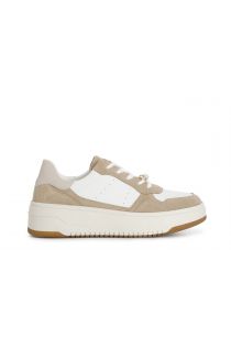 baskets pour femmes en cuir et daim avec accessoire white/bege