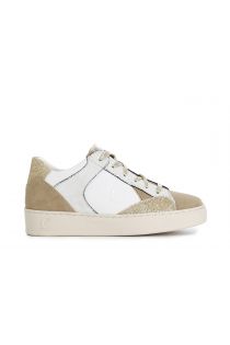 baskets pour femmes en cuir et daim avec empiècements effet métallisé white camel