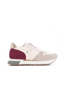 Baskets pour femmes en daim et tissu. logo latéral en relief avec monogramme cafènoir. fermeture avec lacets colorés. assise plantaire interne. semelle en caoutchouc multicolore de 30 mm.