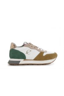 Baskets pour femmes en daim et tissu. logo latéral en relief avec monogramme cafènoir. fermeture avec lacets colorés. assise plantaire interne. semelle en caoutchouc multicolore de 30 mm.