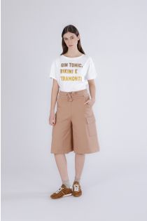 Bermuda femme à la coupe confortable et à taille élastiquée. doté de poches latérales ornées de clous décoratifs il est idéal pour des tenues d'été décontractées chics et tendance. le mannequin mesure 171 cm et porte une taille s. coupe : standard.