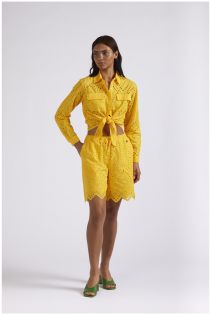 Bermuda avec élastique à la taille en tissu sangallo.