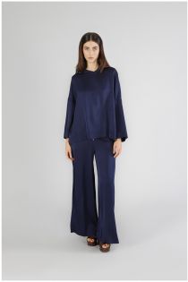 Blouse oversize à manches longues et capuche en satin de viscose. coupe décontractée à combiner avec un pantalon coordonné.