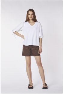 blouse à manches bouffantes en deux matières white