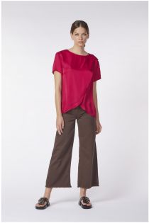 blouse à manches courtes en lin et viscose avec croisement portefeuille cyclamen