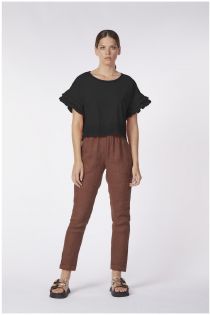 Blouse en coton habilement brodée avec fils ton sur ton. la broderie se trouve sur le bas et sur les manches qui sont les protagonistes de ce vêtement.