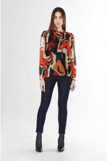 Blouse avec lacet à l’encolure réalisé en georgette de viscose imprimée