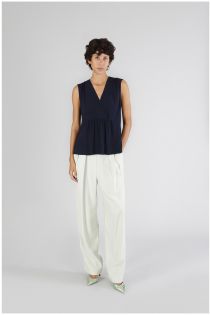 Blouse sans manches avec décolleté en "v" croisé devant. réalisé en viscose marocaine. parfait à combiner avec un pantalon ou une jupe.