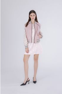 blouson aviateur en similicuir avec manches en dentelle pink