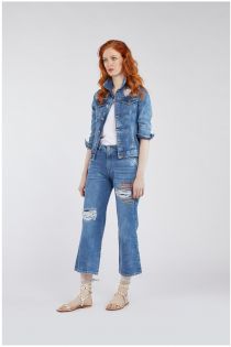 Blouson en toile denim ferme agrémenté d’une broderie multicolore, d’un boutonnage sur le devant et de poches. Modèle classique en denim avec des variantes décoratives exclusives et incomparables, icône de la ligne jean CafèNoir.