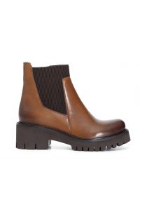 Boots en cuir avec élastique asymétrique. Gros talon en caoutchouc et semelle à effet cranté