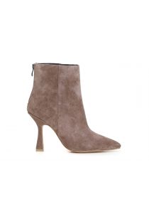 Boots en daim à haut talon asymétrique et bout pointu. Sexy et originales, pour compléter un look osé.