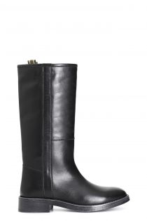 Botte en cuir modèle knight de forme arrondie. talon haut de 33 mm. la semelle intérieure est en cuir.