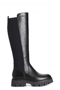 Botte pour femme en cuir et tissu stretch pour un look super audacieux. la semelle intérieure est en cuir. modèle polyvalent et dynamique idéal pour compléter de nombreuses tenues.