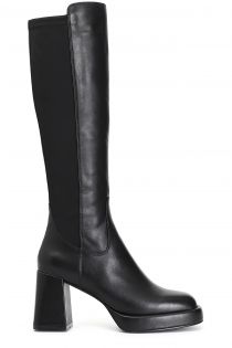 Botte en cuir et en stretch avec un talon de 80 mm et une plateforme de 20 mm. la semelle intérieure est en cuir. confort et élégance à la fois et un caractère unique qui s'adapte à toutes les tenues.