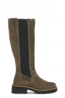 Botte en cuir suédé avec bandes élastiques avec clou personnalisé. talon haut de 50 mm. la semelle intérieure est en cuir.