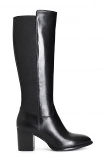 Botte en cuir pour femme avec élastique. talon épais de 60 mm de haut. la semelle intérieure est en cuir.