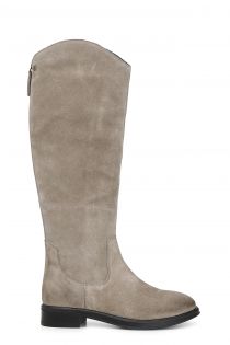 Bottes hautes en daim modèle santiag dans la partie supérieure. Petit talon.