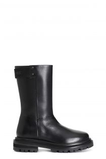 Bottines en cuir pour femme ornées d'un ruban distinctif portant le logo cafènoir noir et de cabochons à la mode. la semelle intérieure est en cuir.